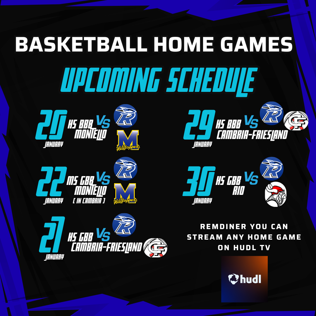 Ms Boys Are still playing same time in Cambria ,4:30 Pm. HS Girls games @ Rio have been moved up to JV 5:00pm Varsity 6:15pmHs Boys Game tonight @ St Ambrose has been canceled, but reschjeduled ...